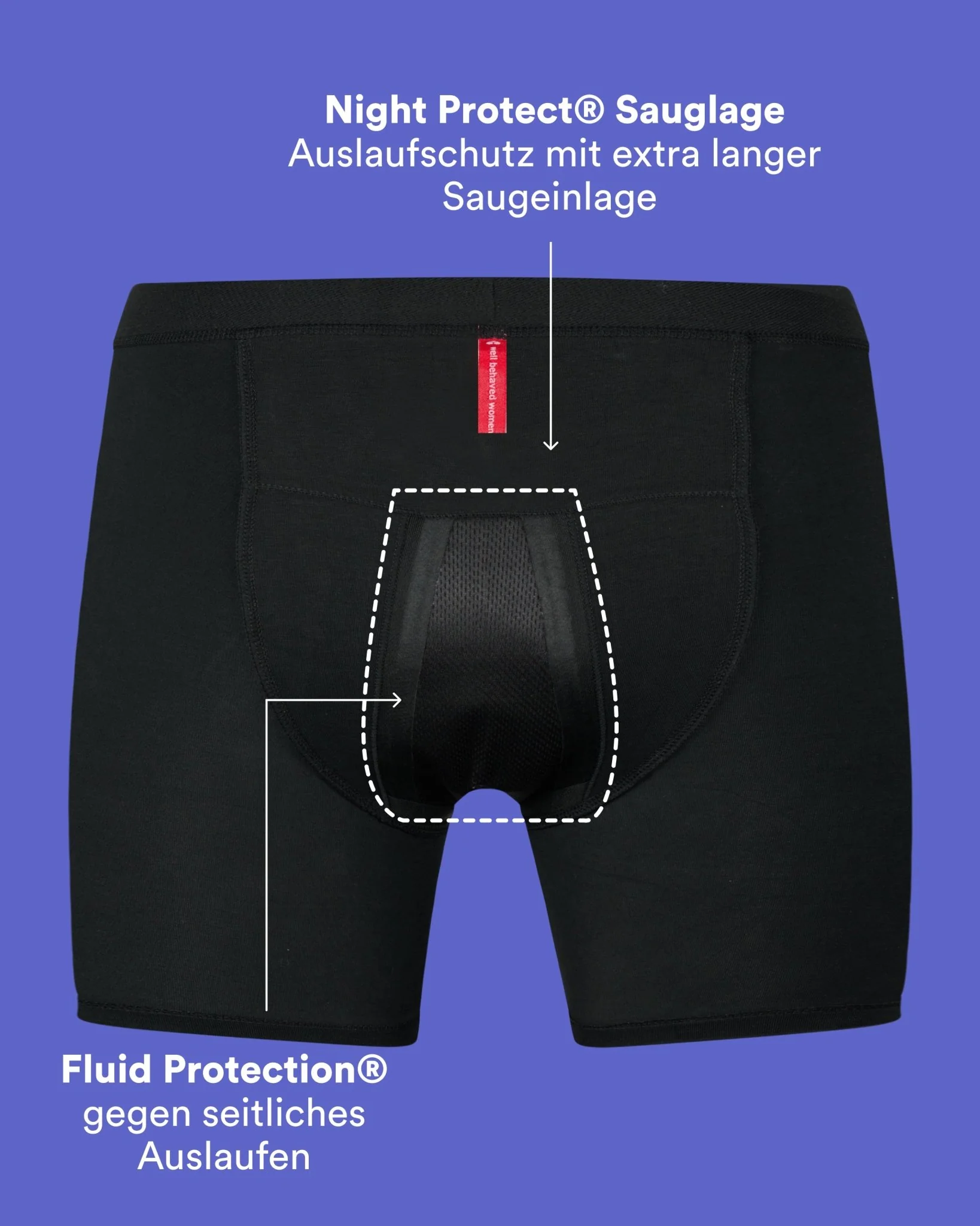 Ruhiger und sicherer Schlaf während deiner Periode - ohne Auslaufgefahr. Mit unseren Night Protect® Period Shorts bleibst du die ganze Nacht trocken. Extra lange Saugeinlage und hautfreundliche Materialien. Bis zu 12 Stunden tragbar.